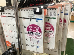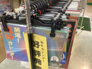 店内入口付近にて2026年のカレンダーを販売しております。家計簿も隣接して展開してありますので、そちらもご覧ください。